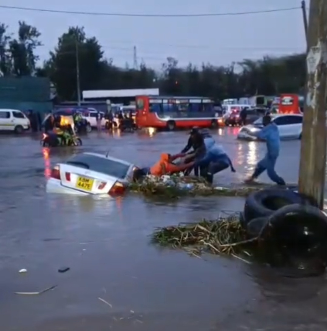 Residents of Ruiru were deeply shocked as two passengers trapped in a saloon car that was sinking rapidly in the floods were being rescued.