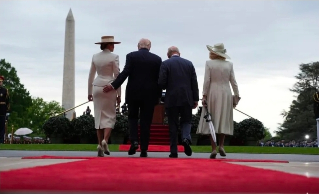 King Charles III and Queen Camilla are greeted by US President Donald Trump and First Lady Melania Trump at the White House